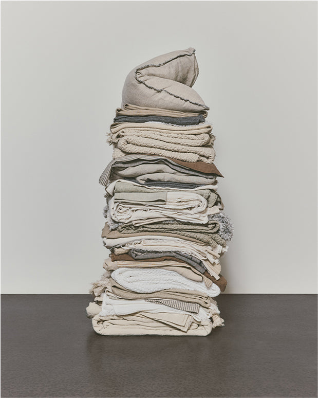 Our pure linen collection is meticulously handcrafted in Lithuania by skilled artisans who are masters in their craft. Sourcing premium long-fibre flax from France and Belgium and following the ancient method of yarn dyeing to ensure rich and lasting colour, each piece is pre-washed and softened to achieve an exquisite patina and tactility that becomes more desirable over time.